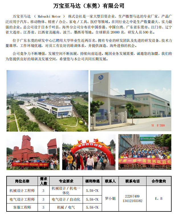 万宝至马达(东莞)有限公司招聘公告