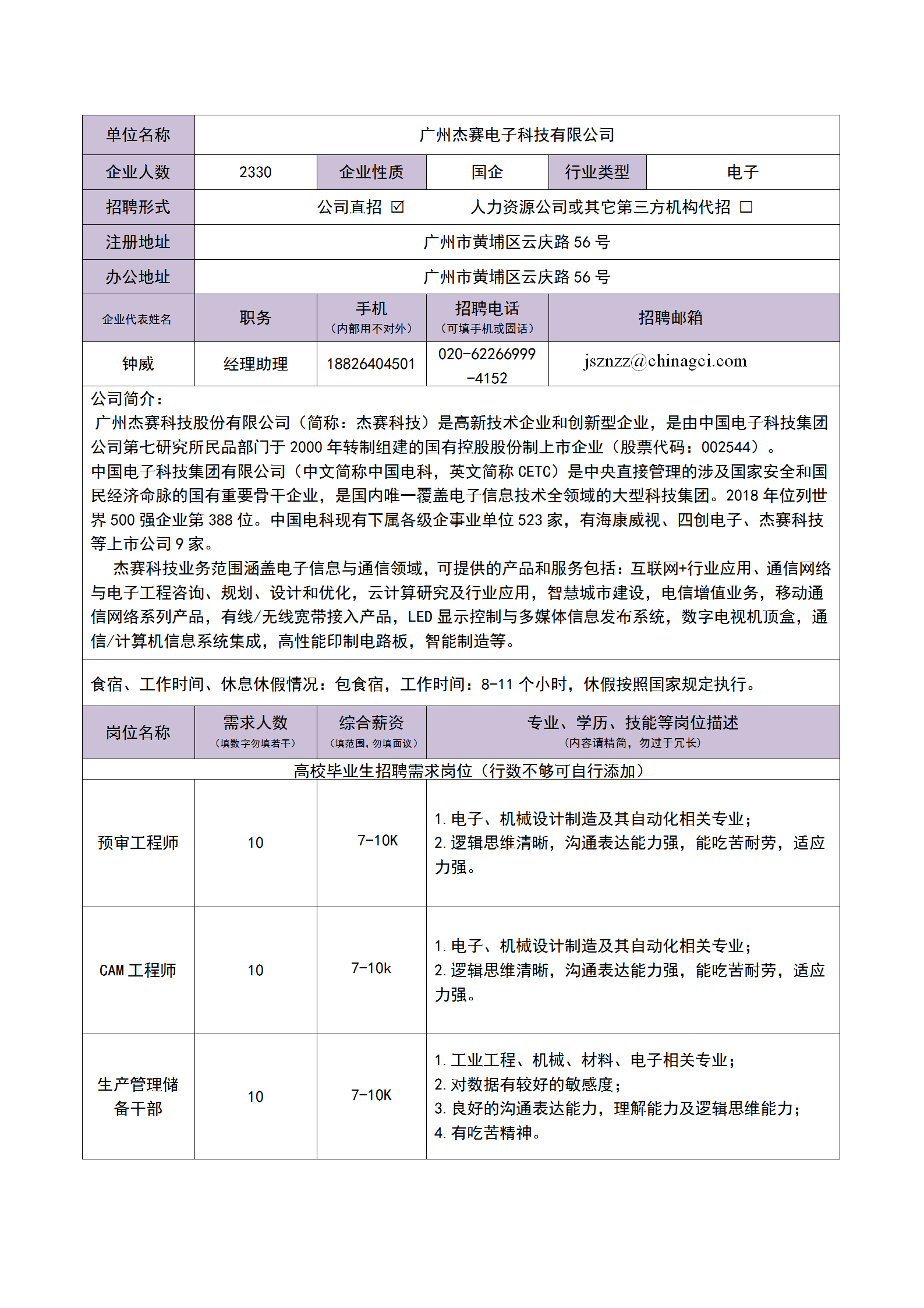 广州杰赛电子科技有限公司招生简章