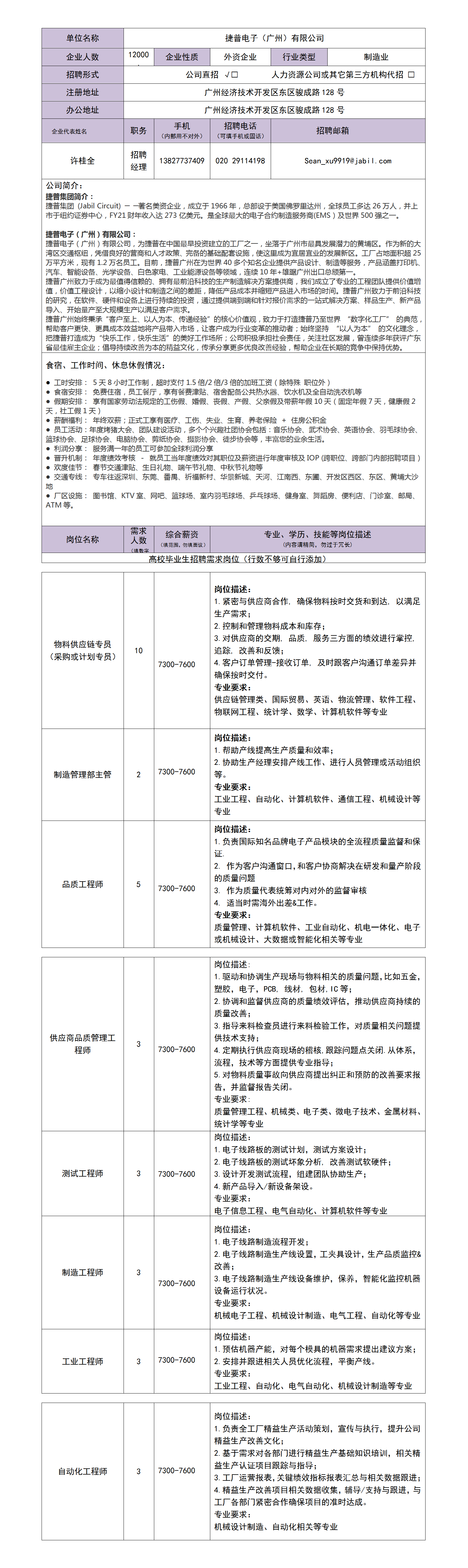 捷普电子(广州)有限公司招生简章