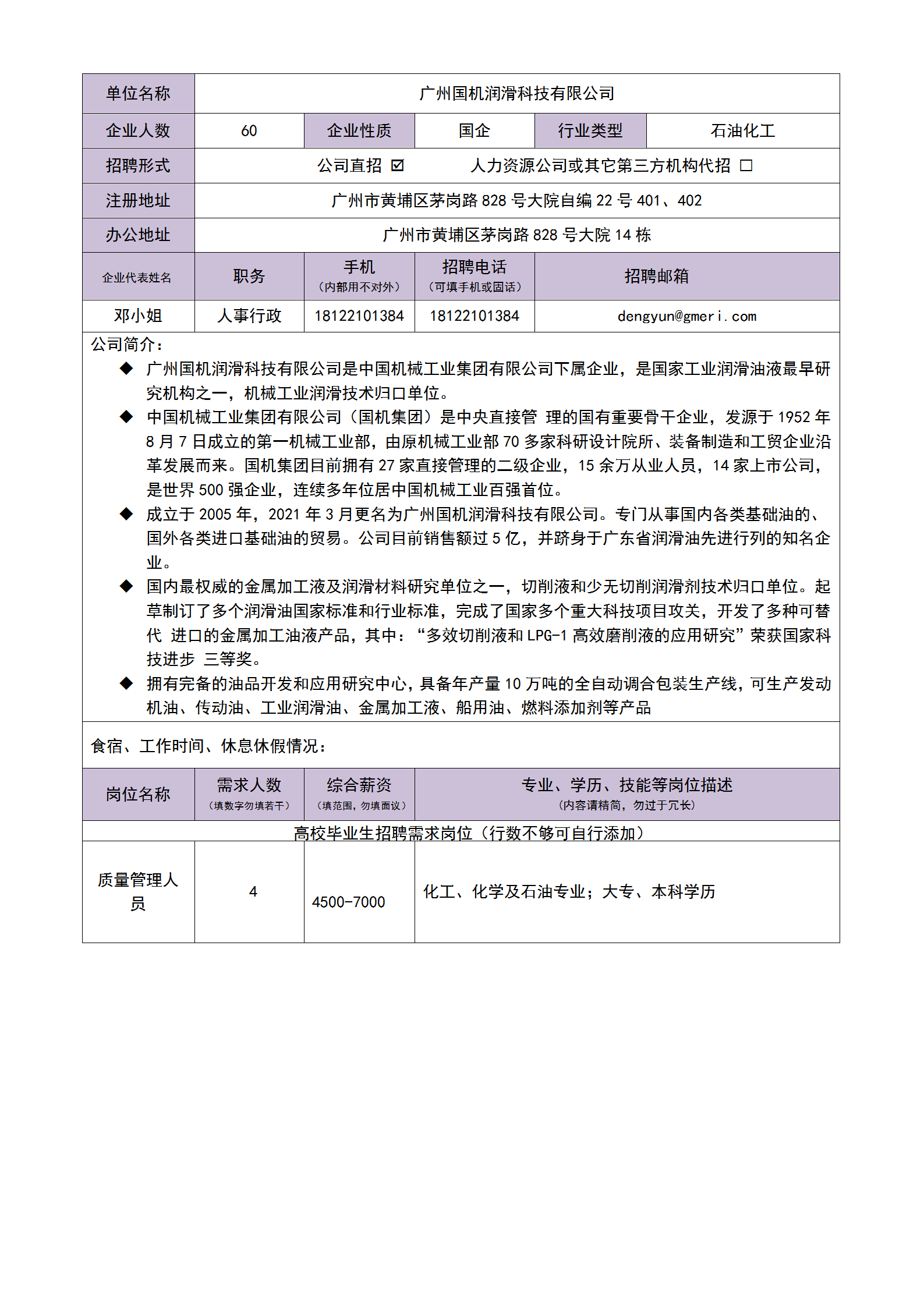 广州国机润滑科技有限公司招生简章