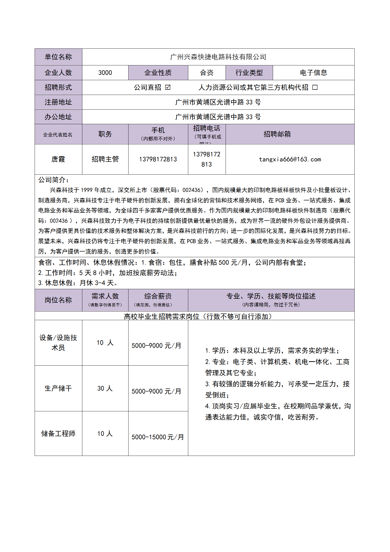 广州兴森快捷电路科技有限公司招生简章