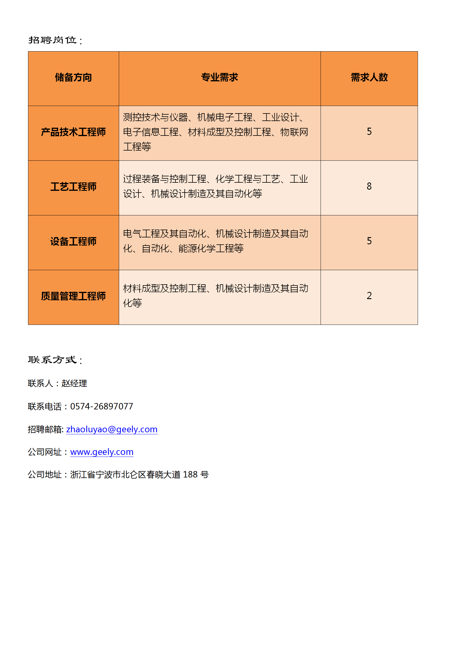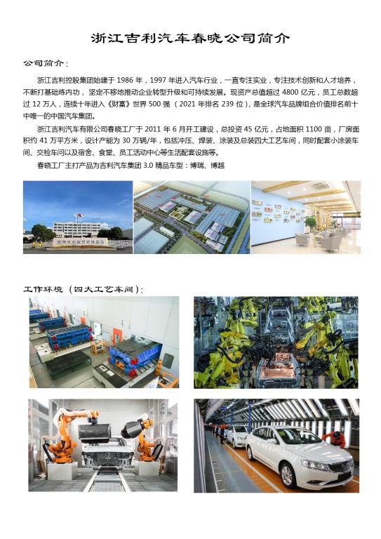 浙江吉利汽车春晓公司简章