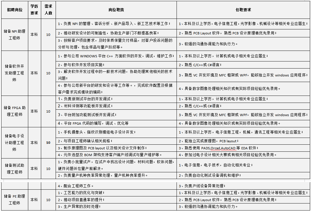 招聘专业:电子、机械、光学、材料、计算机、软件、通信工程、自动化、物理学、数学、统计学、高分子、化学等专业