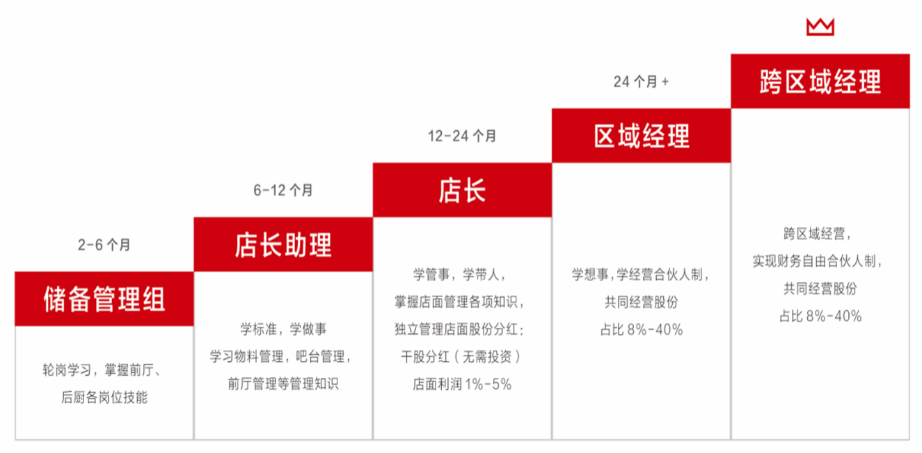 •店长负责制:所有新入职的储备合伙人伙伴,企业为其选送到优秀店面,由店长/区域经理直接负责其培养。