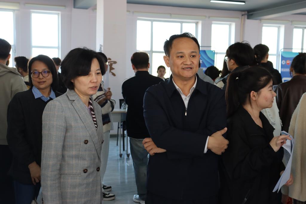 党委书记林立民、党委副书记宁晶深入招聘会会场,与昆山人力资源市场的领导以及企业代表进行了亲切交流,了解企业的招聘需求和学生的求职情况。林立民书记对昆山人力资源市场长期以来对学校就业工作的支持表示感谢,并希望双方进一步加强合作,共同为学生的成长和发展创造更好的条件。宁晶副书记详细询问了企业的招聘进展和学生的应聘反馈,鼓励同学们把握机会,积极就业,在实践中不断提升自己的能力和素质。同时,校领导也表示,学校将继续加强与企业的合作,不断优化人才培养模式,提高人才培养质量,为学生的就业和发展提供更加有力的支持。