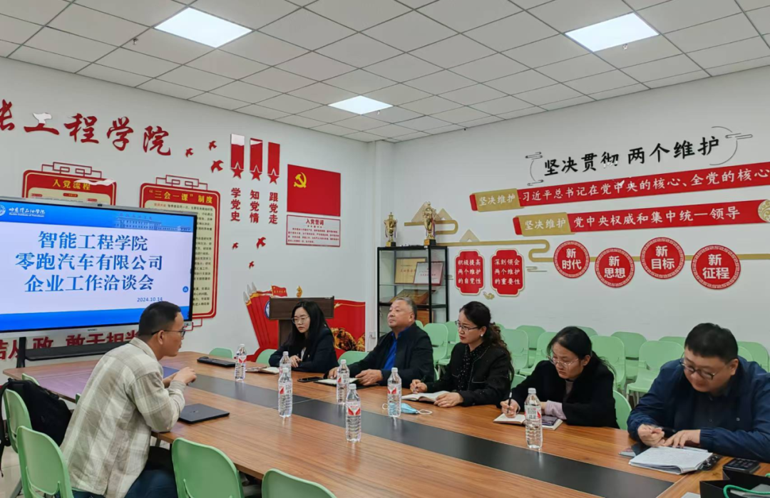 会上,零跑汽车负责人对企业目前的规模、产品科技优势、校企合作需求等情况进行了介绍。并表示希望通过和学院的合作,加强校企合作与交流,培养一批企业需求的智能制造类人才。
