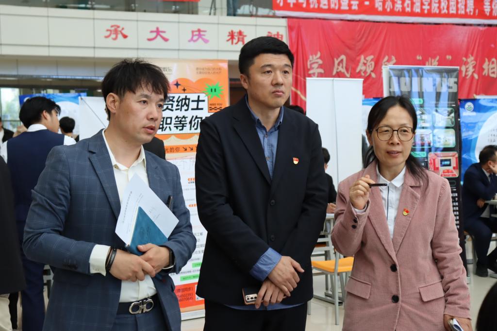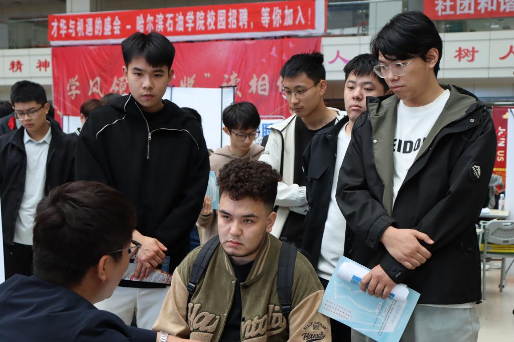 本次双选会共有来自全国各地的100家用人单位参会。现场气氛热烈,人头攒动。不仅有传统的石油、化工类企业,还涵盖了经管、信息、外国语等多个领域的优质岗位。这些企业在党的政策引导下,积极投身我国的发展建设,对人才的需求日益增长。企业代表们对学校学生的专业素养和实践能力给予了高度评价,认为这些学生是企业发展不可或缺的新鲜血液,对未来的发展充满期待。通过这样的活动,他们能够更准确地把握人才市场的需求,并希望更多的哈油学子能够入企实习、就业。而许多学生表示,通过与企业的直接对话,他们对未来的职业生涯有了更清晰地规划,也为今后的就业做好充分的准备。