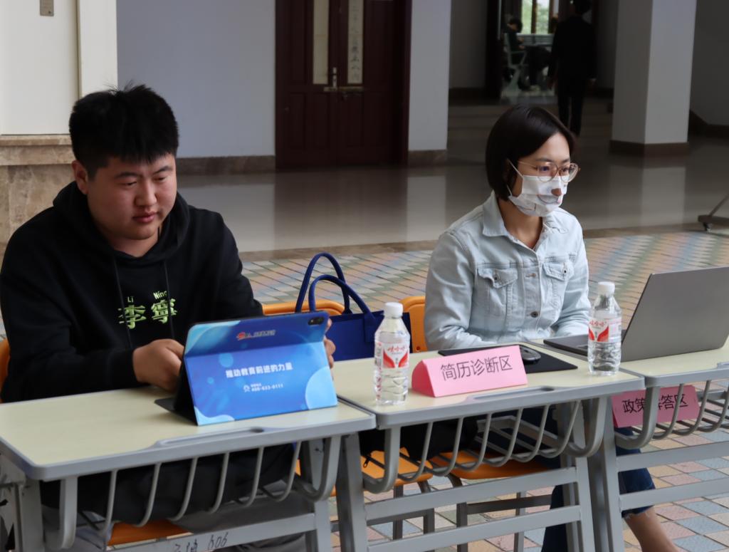 除了提供实习就业岗位外,本次双选会还特别设置了接待区、校企合作区、政策解答区、简历诊断区、征兵宣传咨询区等,由经验丰富的指导老师为学生免费提供“一对一”专业的就业指导服务,包括行业趋势分析、职业发展规划等,帮助学生们更全面地认识自我,拓宽就业视野,明确职业目标。