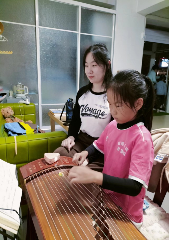 在上课的过程中,我也遇到了困难,比如课堂秩序,学生不配合,正是这些小小的挫折,让我越战越勇更让,我懂得作为一名教育工作者要在教学活动中建立平等的师生关系,而且教师要把自己当成活动中的一员,学生们的良师益友。俗话说:“知之者不如好之者,好之者不如乐之者”,充分调动学生的主观能动性,将他们的学习兴趣利用起来,使他们在快乐中学习。比如,古筝中练习枯燥的指法,可以与儿歌相结合,让学生的弹奏更加有兴趣。看到同学们从一开始连琴弦音都不认识到能看着谱就把乐曲弹下来,心里就感觉多累都是值得的,那一个个天真的笑脸说一句“老师好!”,我就会默默的下决心:今天这堂课一定要上得“漂亮”,这个称呼责任重大!