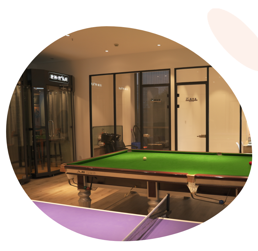 公司提供个类娱乐设施和服务项目——室内团队游戏、电影品鉴会、K歌、狼人杀、室外毅行活动。