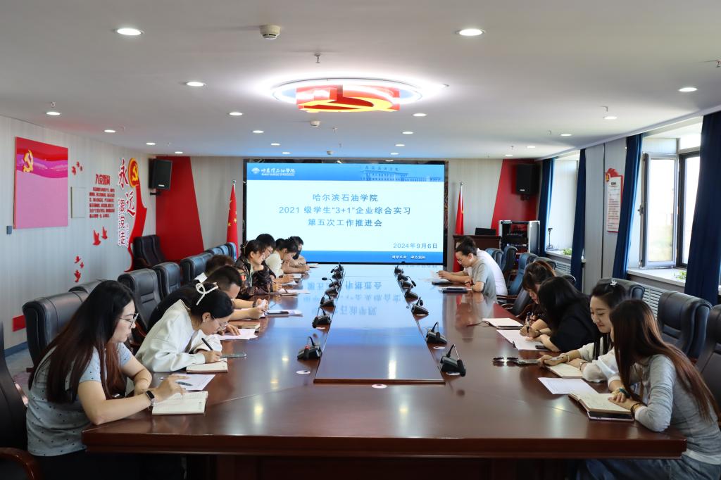 伟德官网于9月6日在综合楼1414召开了2021级学生“3+1”企业综合实习第五次工作推进会。本次会议旨在对2021 级学生企业综合实习情况进行深入总结和分析,为下一步工作指明方向。党委副书记宁晶,就业与校企合作处全体人员以及2021级辅导员参加会议。