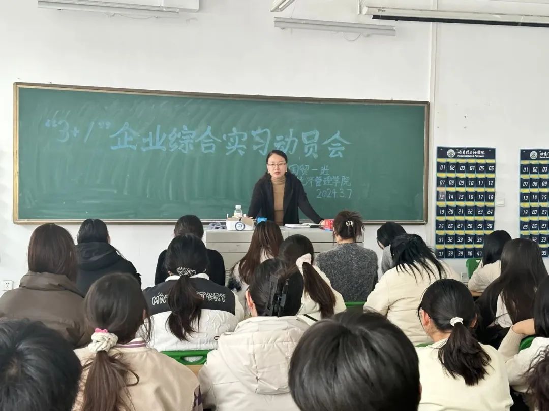 为帮助我院2021级学生深入了解社会需求,抓住宝贵的实习机会,落实好伟德官网“3+1”人才培养模式工作部署,3月7日,经济管理学院党总支书记吴东爽和2021级辅导员陈志勇召开2021级“3+1”企业综合实习专业动员会,我院2021级全体学生参加。