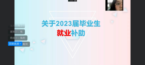 为贯彻落实关于2023届高校毕业生求职就业补贴申报工作,切实做到为同学办实事,帮助符合条件的2023届学生申报求职创业补贴,11月9日晚19:30土木工程学院2019级开展线上主题班会。班会由土木工程学院辅导员王雪老师主持。