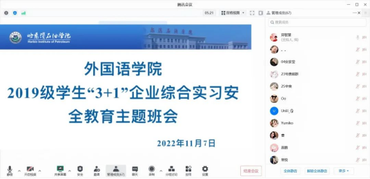 会议伊始,辅导员郑智慧强调要保证实习期间的各项安全,当前全国疫情防控形势复杂严峻,要服从当地防疫政策,着重强调19级实习生要确保自身在工作、学习、生活中的安全。随后,辅导员郑智慧向同学们讲解了求职创业补贴申请的相关事宜,规定材料的上报时间和具体要求。对有意向返校参加考试的同学,讲解相关注意事项以及需要提前准备的相关材料,确保19级学生能够顺利返校并保障在校师生的安全。