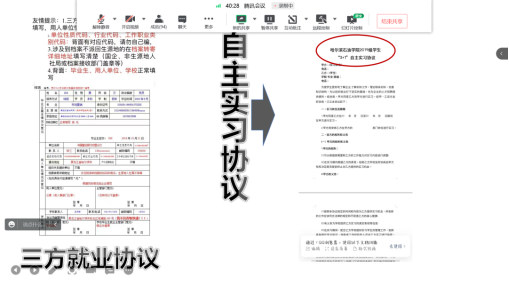 会议上,辅导员郑智慧着重强调了同学们在实习过程中需要注意的安全问题,并对近期事务性的工作进行梳理,告知自主实习的同学们要按时提交自主实习协议。同时强调毕业论文的重要性,大家需要严格遵守指导老师的要求做好论文的各个阶段的准备,为自己的大学生涯画上圆满的句号。对于换岗的同学,辅导员也表示会实时关注,并且根据学生的反馈信息第一时间更新换岗学生的数据信息,保证台账信息的准确性。他强调工作技能无法一蹴而就,必须在日常实践中把握机会,细心体会,建议大家在今后的实习中积极发挥主观能动性,圆满完成实习任务。