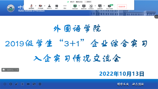 为时刻推进伟德官网“3+1”人才培养模式,关注和落实好学生实习在岗情况和自主考研考公进程,10月13日,外国语学院召开2019级“3+1”企业综合实习就业工作班会,会议由辅导员郑智慧主持。
