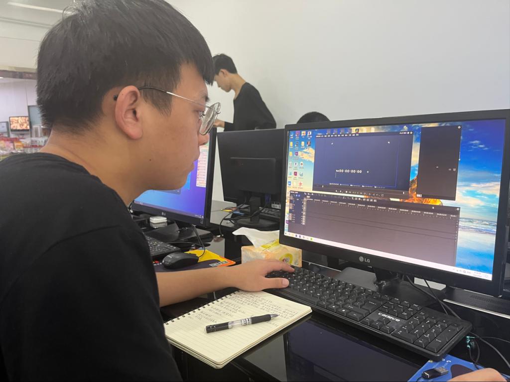 我在哈尔滨呼兰区哈尔滨神洲宏艺影视动画科技有限公司,后期部门担任剪辑师,在公司的主要工作就是,拍摄视频,剪辑视频,合成视频。