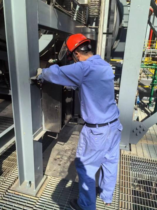 我现在在恒力石化(惠州)有限公司进行实习,现在是一名设备技术员。实习期间,我参与了醋酸回收RO膜系统的检修;还参与了搅拌器的机封更换和维修工作;在日常的工作中是在干燥机,进行巡检和卫生清理工作。有时还会去参与RPF滤座的清理,拆除和更换工作;以下几张照片是我参与维修的照片。