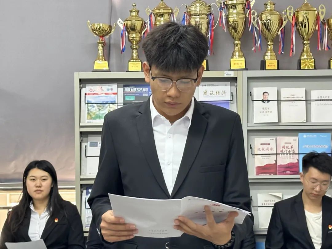 2024年6月4日12点在二教党员之家,土木工程学院学生党支部召开了接收预备党员大会。大会的主要议题是讨论闫鹏等10名同学的入党问题。党支部书记赵宇,支部委员,2022级辅导员王铁媛以及支部全体学生党员参加了会议,会议由学生党支部书记赵宇主持召开。