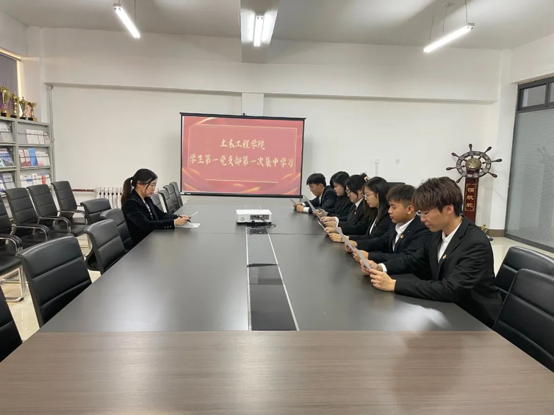 土木工程学院学生第一党支部于2023年11月10日在二教50B会议室召开党支部大会,支部书记赵宇主持会议,她带领全体支部党员认真学习了《扎实推进新时代廉洁文化建设 强化全面从严治党的政治自觉》。