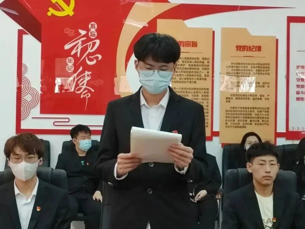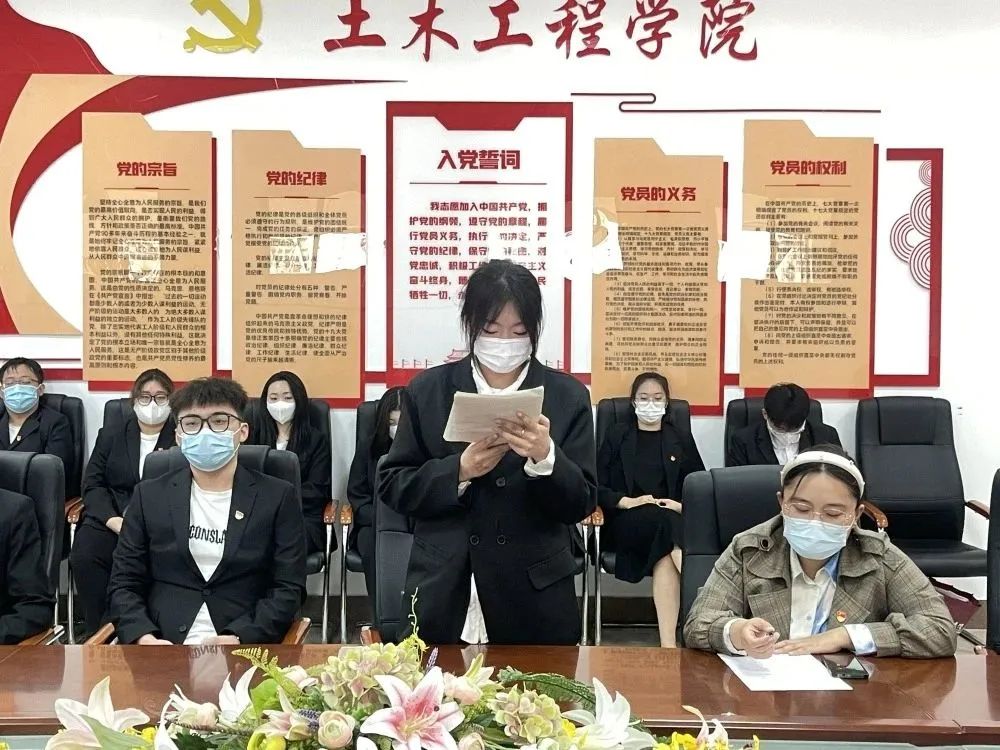 2023年5月24日,土木工程学院学生第一党支部在主教425教室召开党员转正大会。会议由学生支部书记赵宇主持,党总支书记宋旭、2020级辅导员胡秋实、支部委员王雪及在校生党员参会,组织委员做会议记录。会议严格按照党员转正流程进行,本次转正的是贾裕婧等八位预备党员。