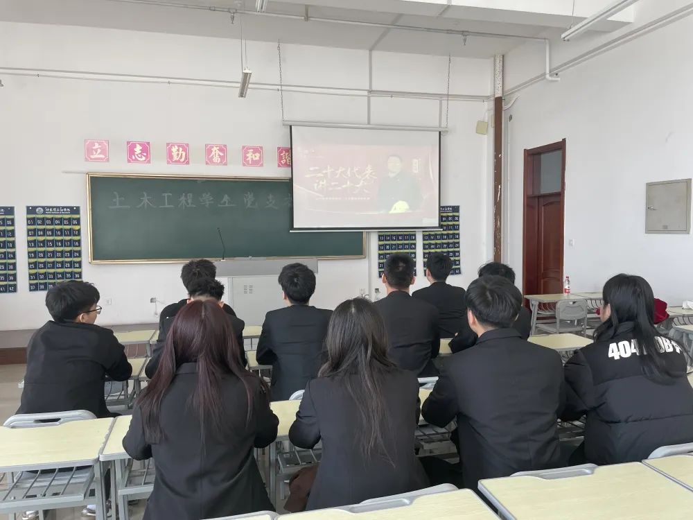 为深入学习贯彻习近平新时代中国特色社会主义思想和党的二十大精神,全面抓好土木工程学院党员师生的教育培训,持续推进党的二十大精神学习教育工作走深走实,2023年3月27日上午,学院通过集中收看、个人收看和回听回看等方式组织全体党员收看《党课开讲啦——二十大代表讲二十大》党课活动。
