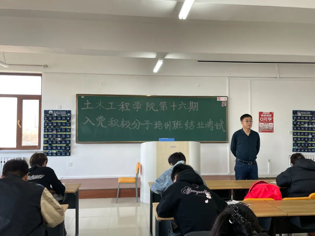 2024年10月29日,在二教502和503教室开展了2024年初级党课培训班结业考试,此次监考由党总支书记刘强和学生党支部书记赵宇负责,全院积极分子参加考试。通过党课培训,使同学们更加深入地了解了党,并认识到了党性学习的重要性,也使同学们的思想得到了升华,使同学们能更加严格的要求自己,努力向党组织看齐,积极向党组织靠拢,更加热爱我们伟大的中国共产党,坚定了加入中国共产党的决心。