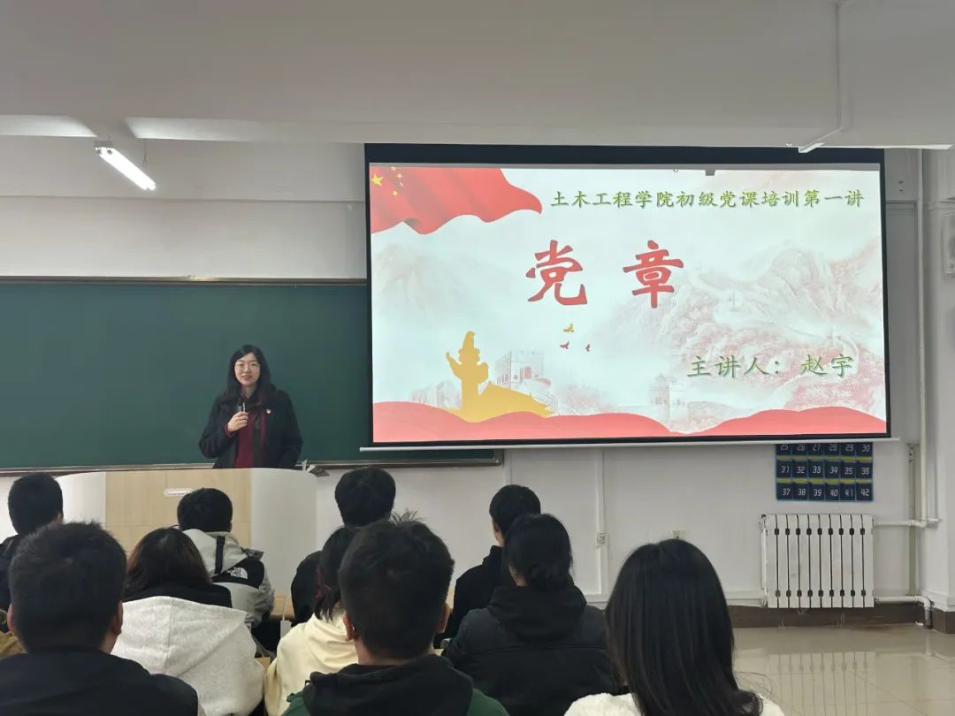 为深入学习贯彻习近平新时代中国特色社会主义思想,加强对学生的思想引领,提高广大学生的理论水平和思想素质,加强党性修养,吸引优秀青年积极向党组织靠拢,2024年10月21日至2024年10月25日期间,土木工程学院顺利开展2024年初级党课培训班课程,学院党总支书记刘强出席开班仪式并进行党课第一讲授课,学院学生党支部书记及辅导员老师担任本次培训班第二讲至第五讲课程的授课,全院60余名学生聆听了党课。