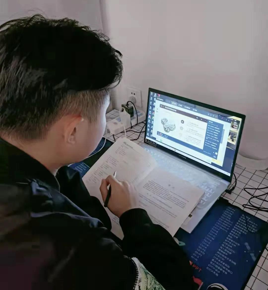 老师们线上教学有温度,课前梳理学生名单,确保学习路上“一个都不能少”。通过“钉钉平台直播+学习通签到”形式,提前发起课堂直播,进行课前“收心”。课中通过连麦开视频关注学生的学习状态,查看学生是否按要求坐在桌前,是否准备好教材、笔和笔记本等。对于表现好的同学给予加分,鼓励学生在线上课程也要有良好的精神面貌。