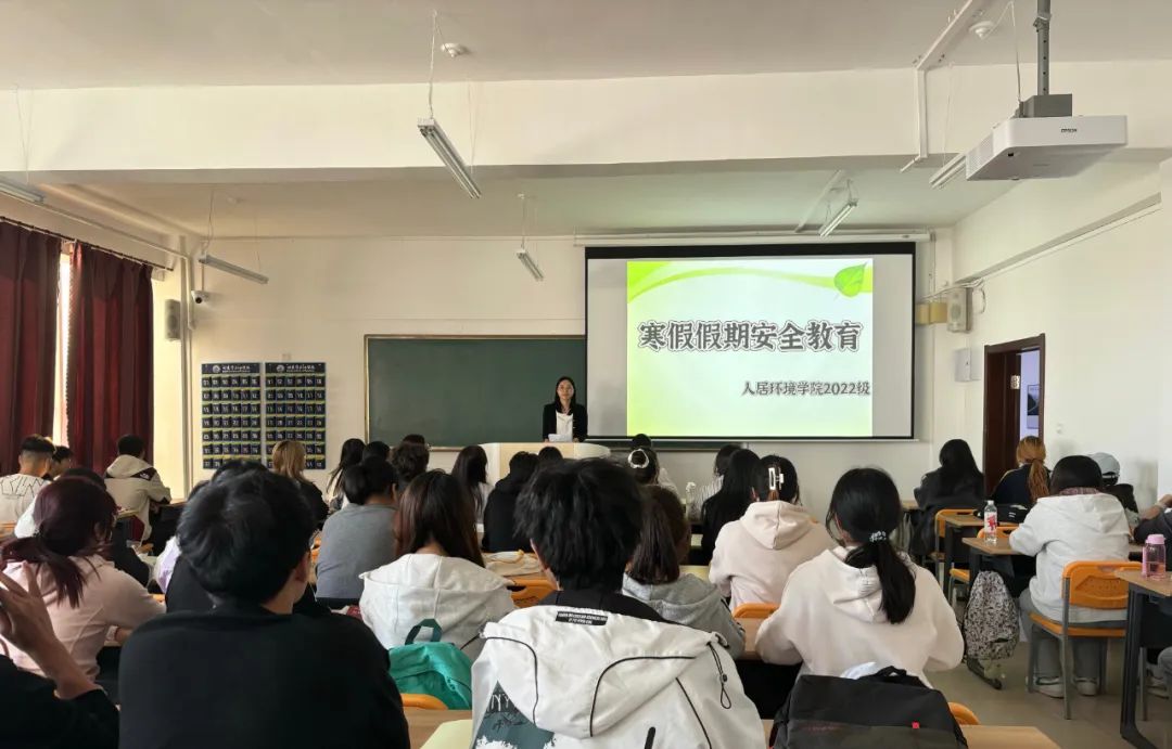 随着寒假的临近,为了确保全体学生安全离校,度过一个平安愉快的假期,人居环境学院于2024年12月24日-26日,各年级分别组织召开了寒假假期安全教育主题班会,全体在校学生参加。