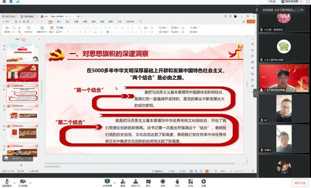 为深入学习贯彻习近平新时代中国特色社会主义思想,深化团员和青年主题教育。2023年1月3日-5日,土木工程学院于线上面向2021、2022、2023年级学生开展主题教育宣讲工作,覆盖人数1030人,此次宣讲由土木工程学院学生组织优秀学生代表为全院团员和青年进行宣讲。