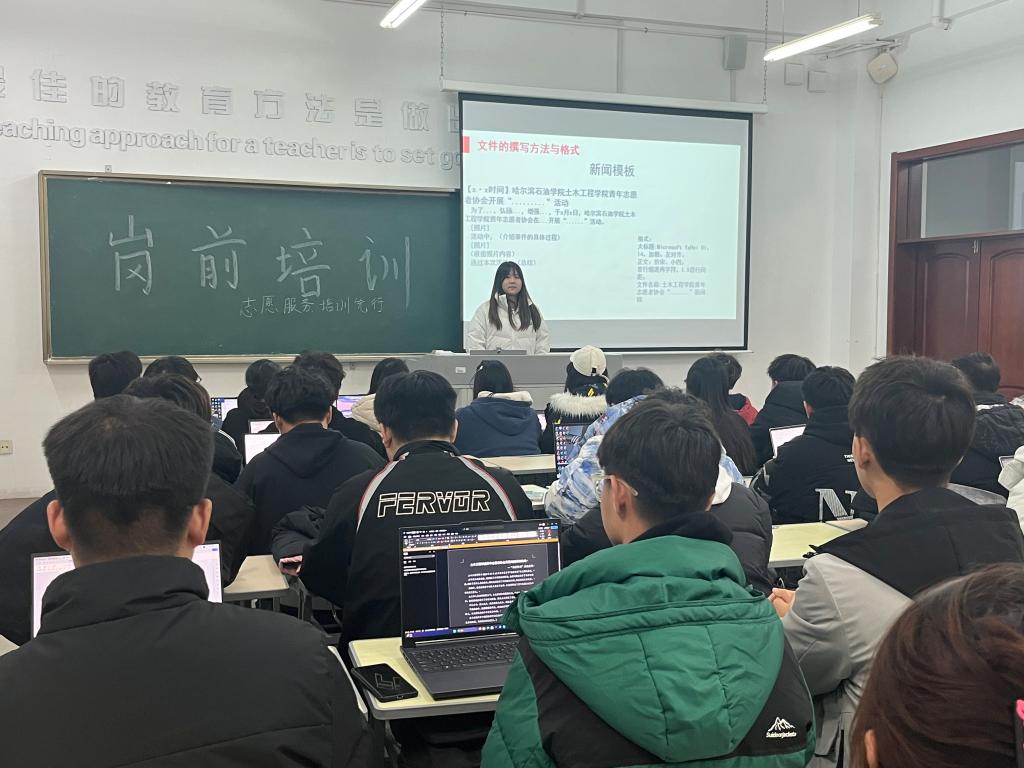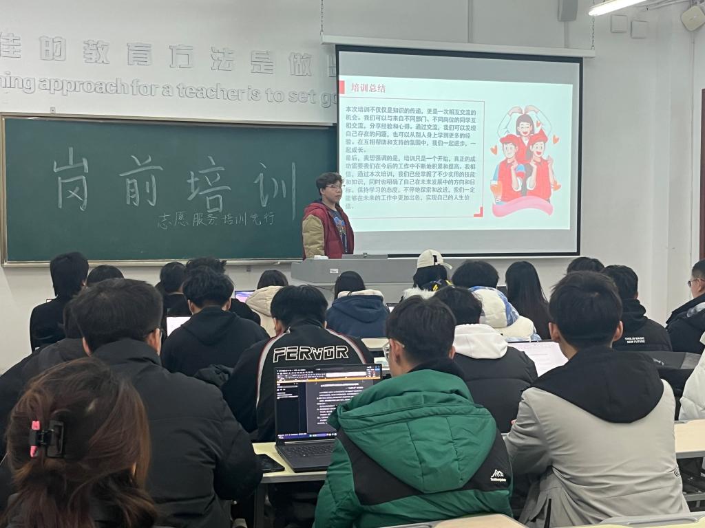 活动中,先由青年志愿者协会负责人詹天旭为新成员介绍了志愿者定义和四个志愿精神,让大家进一步了解志愿者及志愿服务性质。再由21级成员代表依次介绍志愿服务流程、办公软件的基本使用方法、策划、总结和新闻撰写的方法与格式等。培训的内容主要突出志愿精神、志愿服务理念和文明常识等,提高新成员思想认识和宣传普及志愿服务理念,让他们了解志愿服务的相关知识,充分体会到“我参与、我奉献、我健康、我快乐”的志愿服务精神。