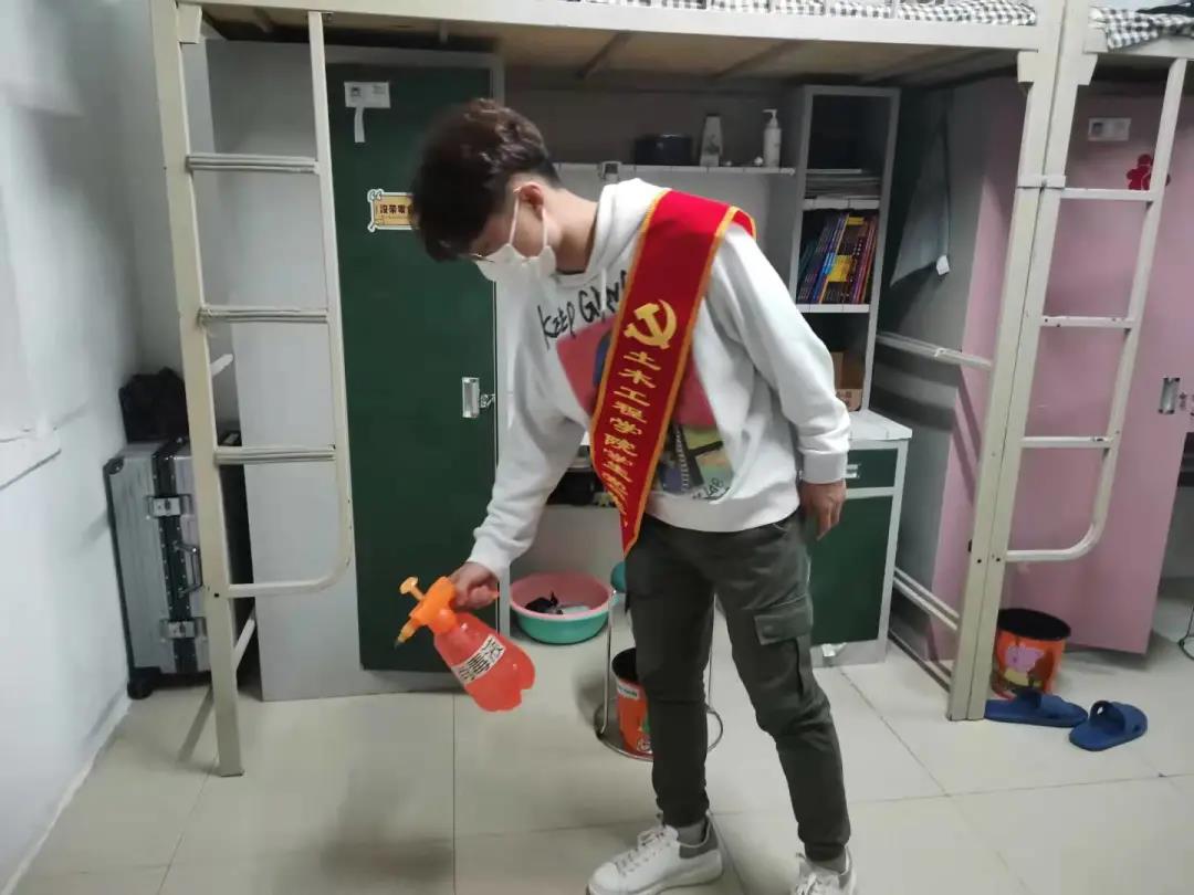 为贯彻落实伟德官网关于创建安全文明校园,进一步加强疫情防控力度,提高学生疫情防控意识的方针政策,土木工程学院学生党员于2021年10月29日在学生寝室和教室进行喷洒消毒和清扫卫生志愿服务活动。
