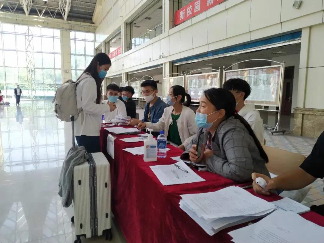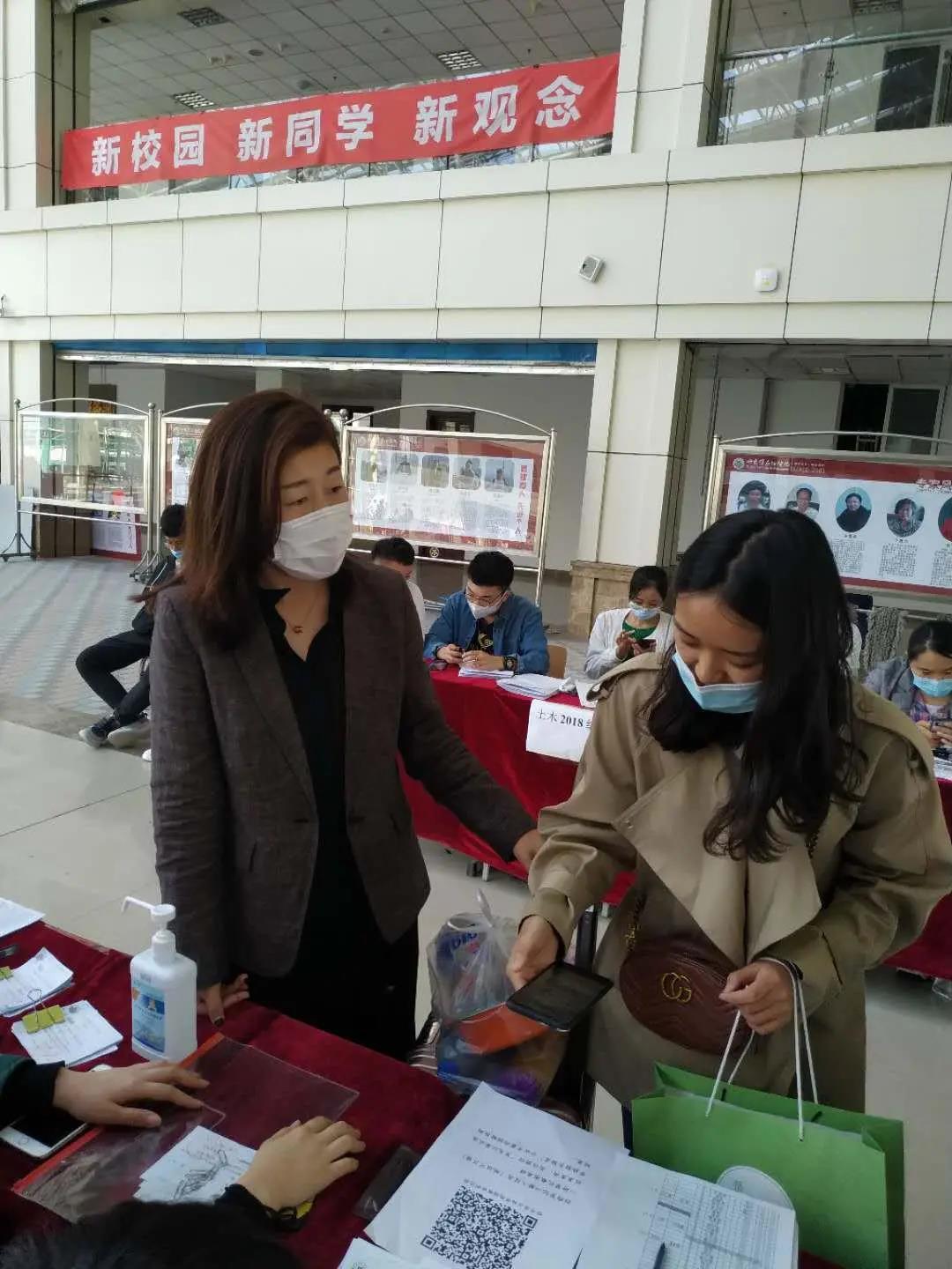 验码、测温、消毒、填写寝室入住卡、嘱咐在校期间的注意事项,我院的辅导员们不厌其烦地认真做好每一项工作,为返校的学生提供最温暖贴心的服务。盖晓连院长多次到学院接待现场,了解学生返校情况,并与学生亲切交流假期在家的学习和生活情况,她鼓励同学们返校后尽快找回学习状态,端正学习态度,在校学习期间能收获更多的专业知识。