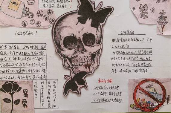 通过这次禁毒为主题的手抄报大赛,不仅提高同学们的安全防范意识、增强对心理健康与和谐的重视,还为同学们提供了一个展示个性设计艺术才华的平台,相信同学们更加坚定禁毒防范意识。如今,战“疫”的硝烟还未散去,禁毒的脚步依然铿锵,毒品一日不绝,禁毒一日不止,让我们珍爱生命,远离毒品!