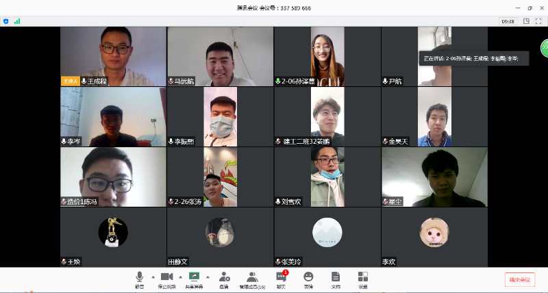 2020年4月24日下午,土木工程学院社团联合会在腾讯会议上召开2019-2020学年第二学期第一次视频会议。会议由社团联合会主席孙泽蔓主持,参会人员有学团办公室主任赵宇老师,社团联合会书记王成程,副主席刘雪欢,以及各部门副部长和各社团副社长。会议上就本学期社团联合会工作做出了详细安排。