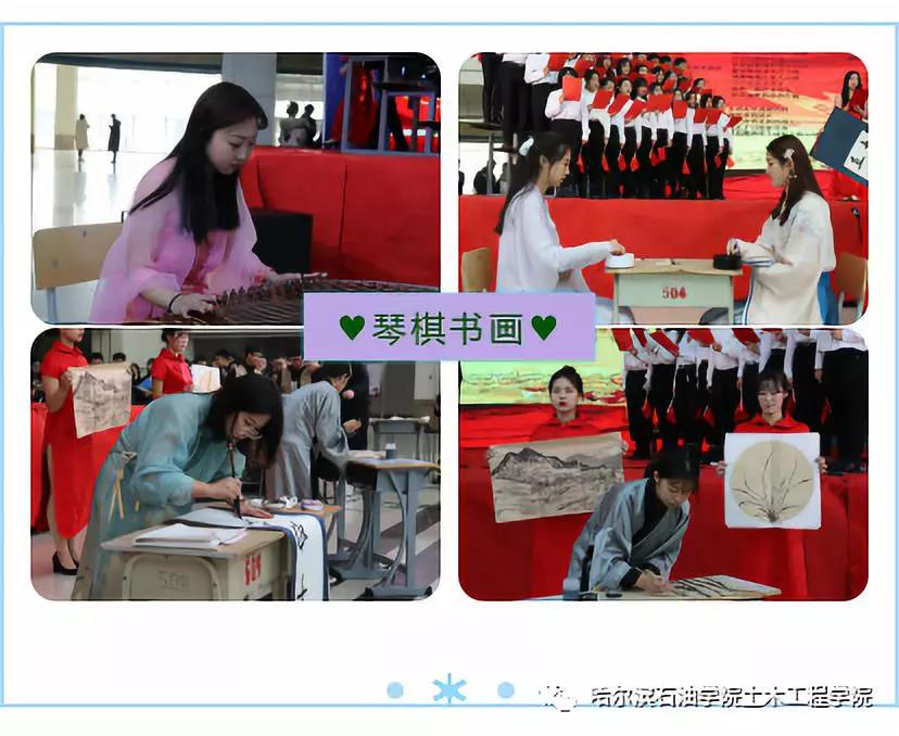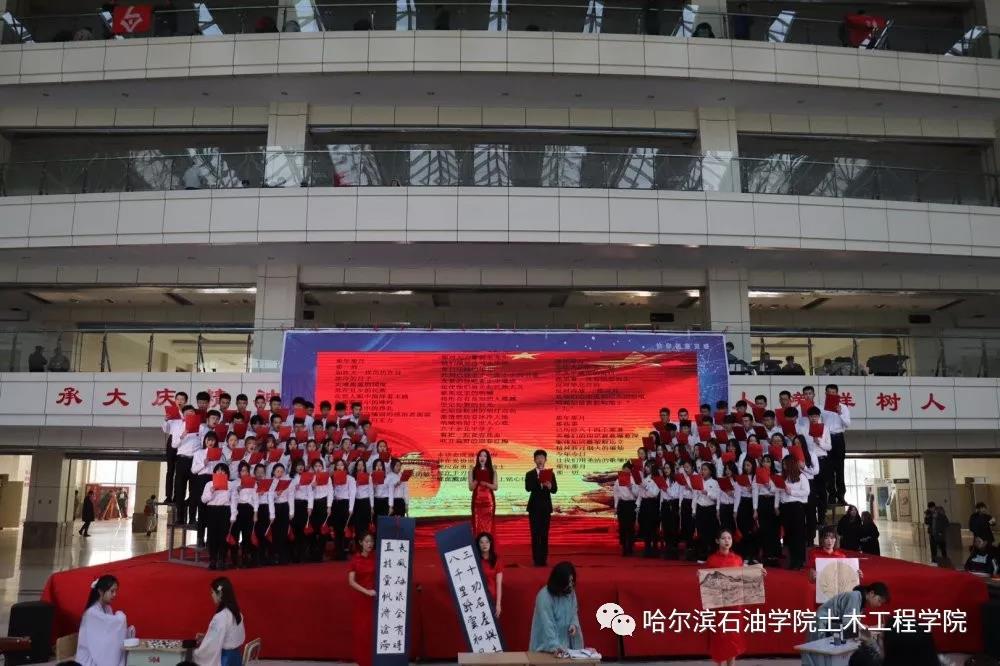 不忘初心忆昔年,牢记使命瞻今朝。朗诵结束时的“四艺”展览也充分彰显了当代青年大学生的多才多艺,也体现了中华上下千年来的文化自信。短短几分钟的朗诵让我们看见了中国的过去,但台上的土木学子却让我们看到了祖国母亲的未来。