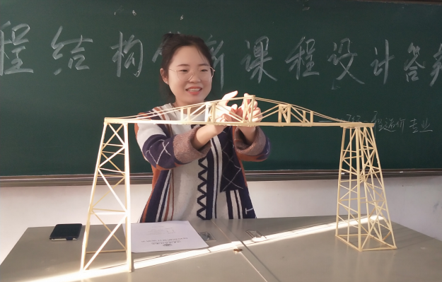 答辩环节由14组设计团队的学生代表分别对作品方案比选、作品制作的可操作性、结构体系的选择及各组模型的特色、团队协作等方面进行汇报,并现场对本组模型进行称重及加载试验,以验证模型的承载能力。指导老师针对每组学生的答辩及模型设计进行针对性地提问,考察同学们在设计过程中对专业知识、设计方法的掌握及团队中各小组的协调能力。