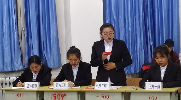 本次比赛由辩论社的8名成员组成正反双方,正方辩题为“青少年做加法更幸福”;反方辩题为“青少年做减法更幸福”,2019级辅导员王雪莅临本次比赛,并担任比赛的评委及嘉宾。比赛进行过程中八位辩手旁征博引妙语连珠,结合理论与现实充分论证了青少年的加减法的人生态度问题,双方针锋相对互不相让。为大家奉献了一场有理有据的精彩辩论。经过立论陈词、攻辩阶段、攻辩小结、自由辩和总结陈词五个环节环环紧扣的激战,最终反方以团体85.5分的成绩获得冠军。赛后王雪老师对本次的比赛进行了点评并对辩论社的8名成员的能力和表现给与高度认可评价。