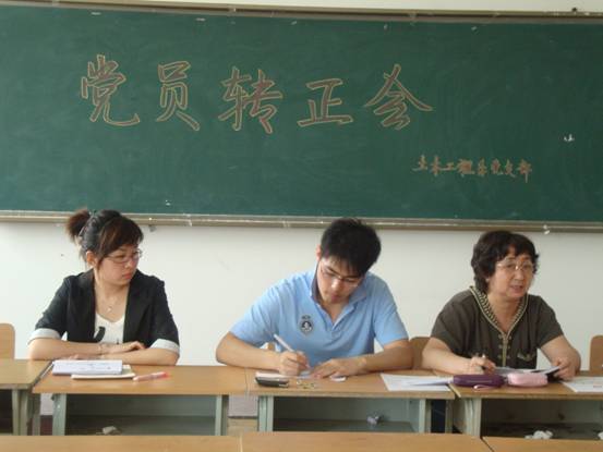 10年5月24日,教学楼511室召开徐淑媛同学转正鉴定会。会议由郭亚杰副书记主持,盖晓连老师记录,各位党员老师及同学参加会议。会上,各位老师积极发表建议,气氛融洽。最后,与会党员全票通过,支部宣布徐淑媛同学成为中共正式党员,郭亚杰书记对该同学进行总结评价,并且提出殷切希望。