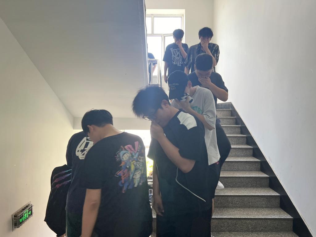 演练当天学生们正在宿舍休息,突然间,“火警信号”响起,负责人按照演练预案的安排,立即组织学生迅速站队。各个楼层负责人迅速到位,指挥学生按消防疏散路线向楼下撤离。整个演练过程中同学们积极配合,有条不紊的进行疏散,在最短的时间内,安全有序的到达指定地点。整场演练从拉响警报至全体人员撤离仅用时3分钟。没出现一个学生留在现场,也没有出现因为拥挤而造成的意外发生。