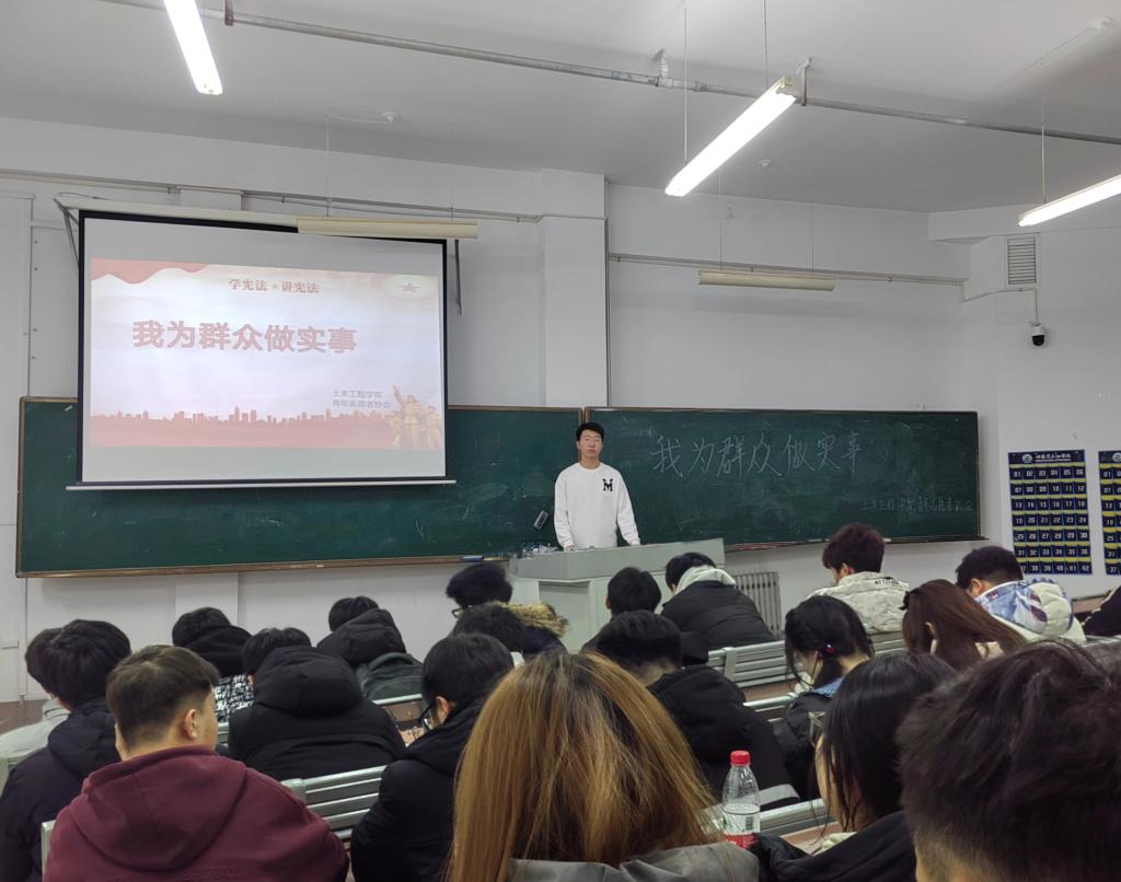 为进一步扎实推动教育入思想、见行动,提高学生法治意识和法律观念,解决同学们身边的切实问题,12月1日,伟德bv国际体育土木工程学院青年志愿者协会在主教304开展了“我为群众做实事”的普法活动。