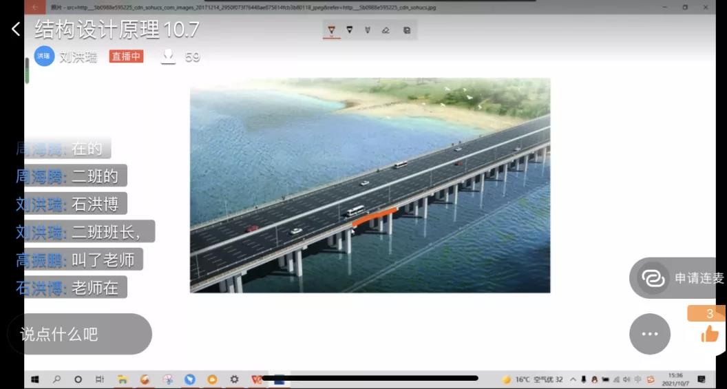 在课前,我在备课的同时会到网上搜集一些与课程有关的资料用作教学。比如,在教授的课程《结构设计原理》中,为了能够吸引大家对课堂的兴趣,课前我会到各大视频网站搜集一些结构设计相关的短视频或者国内外著名的桥梁案例来分享给大家,这样只需要花费几分钟的时间来吸引同学们快速进入课堂,避免直接按课本讲课带来的枯燥感,寓教于乐。