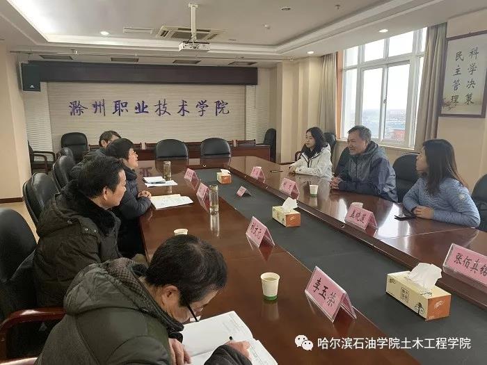 2020年1月7日,伟德bv国际体育副校长胡文带领土木工程学院院长盖晓连、副院长于冰、张佰真铭3人赴滁州职业技术学院进行考察交流。滁州职业技术学院校党委委员、副校长江洁,建筑工程学院书记刘文元、建筑工程学院副院长张国富热情接待并组织召开座谈会,开展工作交流。