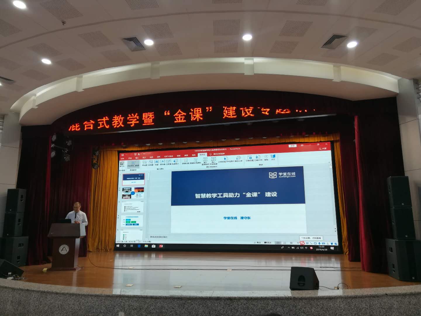 为深入学习“全国教育大会”和“新时代全国高等学校本科教育工作会议”的会议精神,贯彻落实教育部发布的《关于加快建设高水平本科教育全面提高人才培养能力的意见》(新时代高教40条)和2019年陈宝生部长在“全国教育工作会议”上的讲话精神,积极响应教育部《教育信息化2.0行动计划》(教技[2018〕6号),“落实、落实、再落实”,以智慧教学推动信息技术与教育教学深度融合,全面提高高校人才培养能力和质量,助推中国高等教育变轨超车。由东北农业大学主办的“混合式教学暨‘金课’建设”专题讲座于4月25日在东北农业大学顺利举办。我院教师姜涛、安晓星、肖红、李永泽参加了此次讲座,听取了特邀专家的报告。专家们分别就“启发、挑战、思维-《组合数学》混合式课程建设探索”与智慧教学助力金课建设等方面内容进行了精彩的报告。