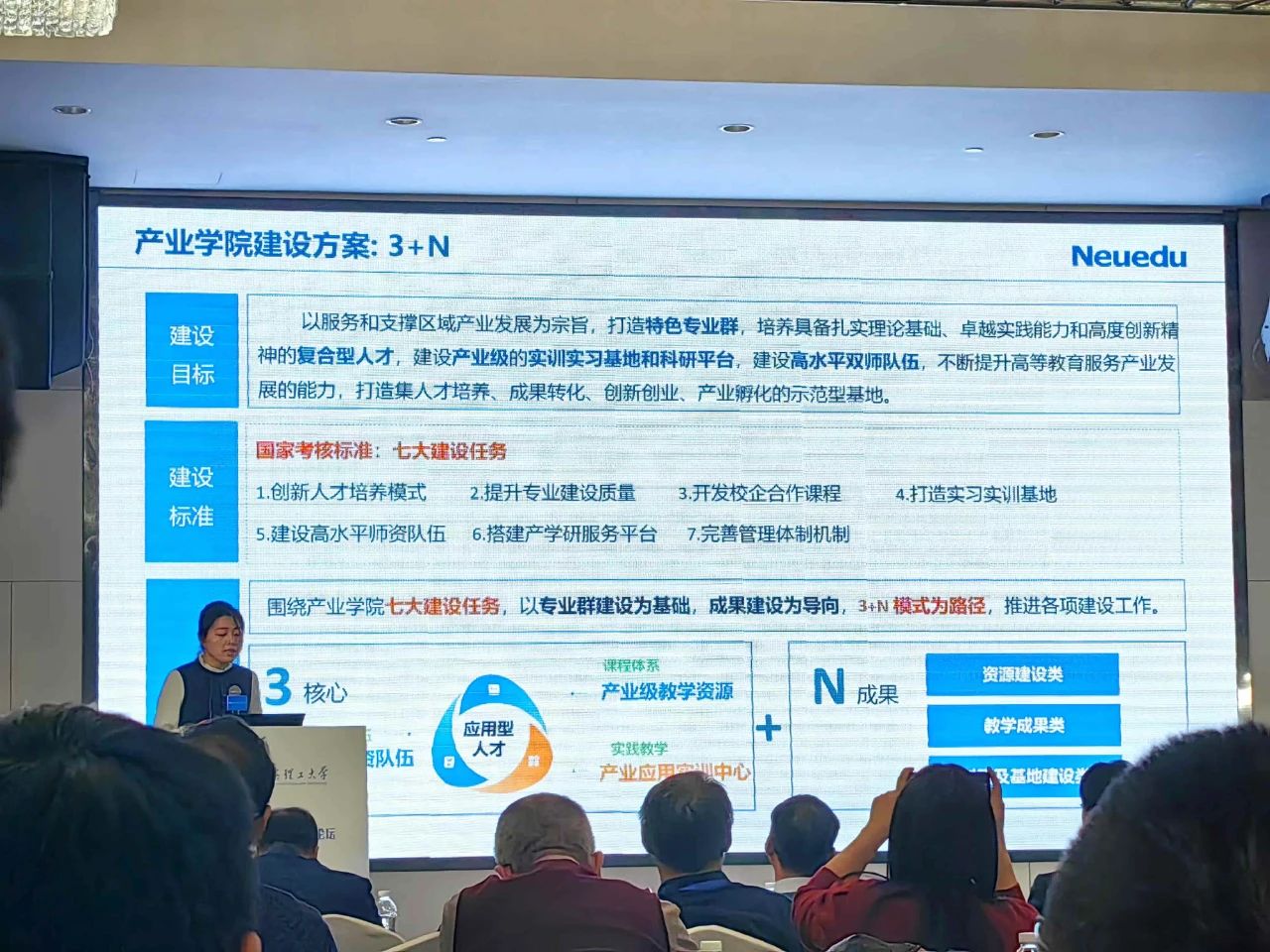 论坛上,多位专家学者进行了精彩的报告。东莞理工学院的黄辉宇教授首先分享了东莞理工学院在现代产业学院建设方面的实践与问题思考,为与会者提供了宝贵的经验和启示。随后,东软教育科技集团的赵凌云部长作了题为“新工科背景下产业学院建设探索与实践”的报告,他详细阐述了新工科背景下产业学院的建设路径和具体措施。