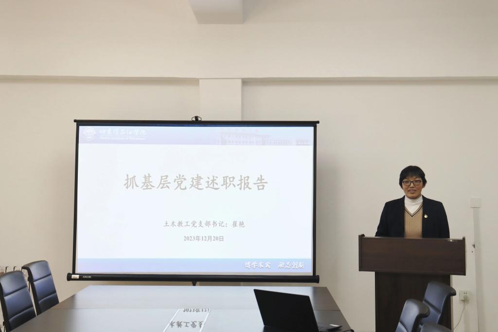 为检验各支部党建工作成效,推动学院基层党建工作取得新突破,根据校党委组织部《伟德bv国际体育2023年度党组织书记抓基层党建述职评议考核工作实施方案》要求,12月20日中午,土木工程学院党总支召开2023年度党组织书记抓基层党建述职评议会。学院党总支书记宋旭、副书记盖晓连以及党总支委员参加了会议。会议由宋旭书记主持。