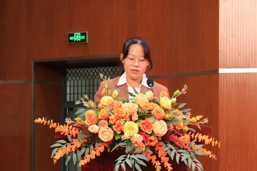 2023级工程造价二班的金彦杞同学代表新生发言。她表示,要发扬土木人精益求精、追求卓越的创业精神,通过学习专业知识,成为社会之希望,祖国之栋梁。以奋斗之姿态不负青春,不负华年,在不断努力与奋斗中磨炼意志,在美好的青春篇章里砥砺前行。
