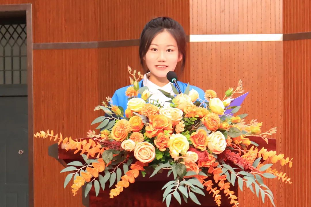 典礼上,2022级工程管理二班的刘天宇同学作为在校生代表发言,她分享了自己的求学经历,希望新同学们尽快适应新的环境,养成良好的学习习惯和生活习惯,调整身心状态,以最饱满的精神面貌迎接大学生活。在老师们的教育引领下,传承土木精神,勇于创新,追求卓越,度过充实多彩的大学生活。