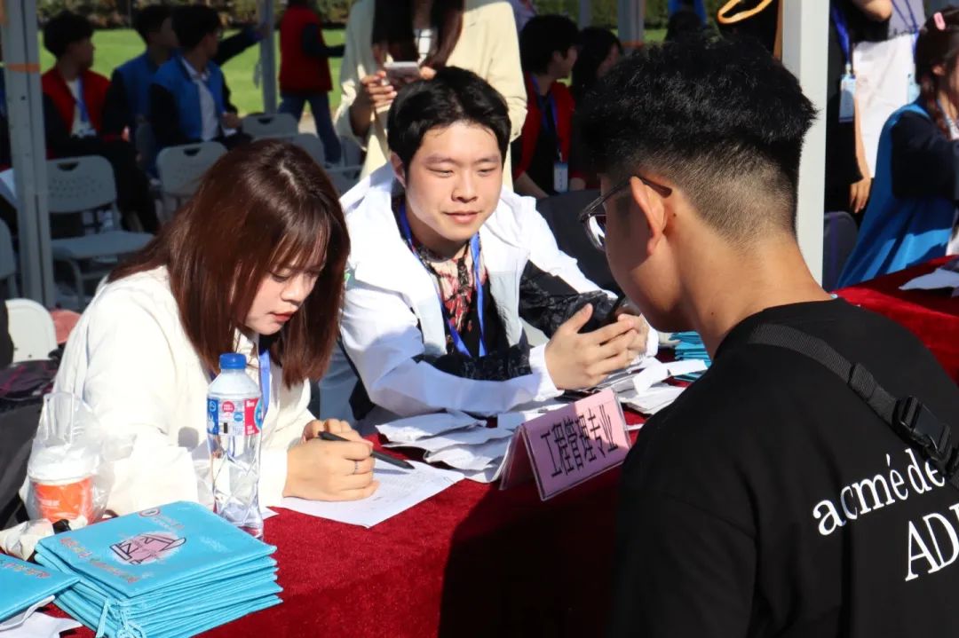 在迎新工作中,学院全体工作人员有条不紊地核实新生身份信息、扫码报到、发放寝室钥匙,并为每一位新生发放了学院精心准备的“相遇礼”。